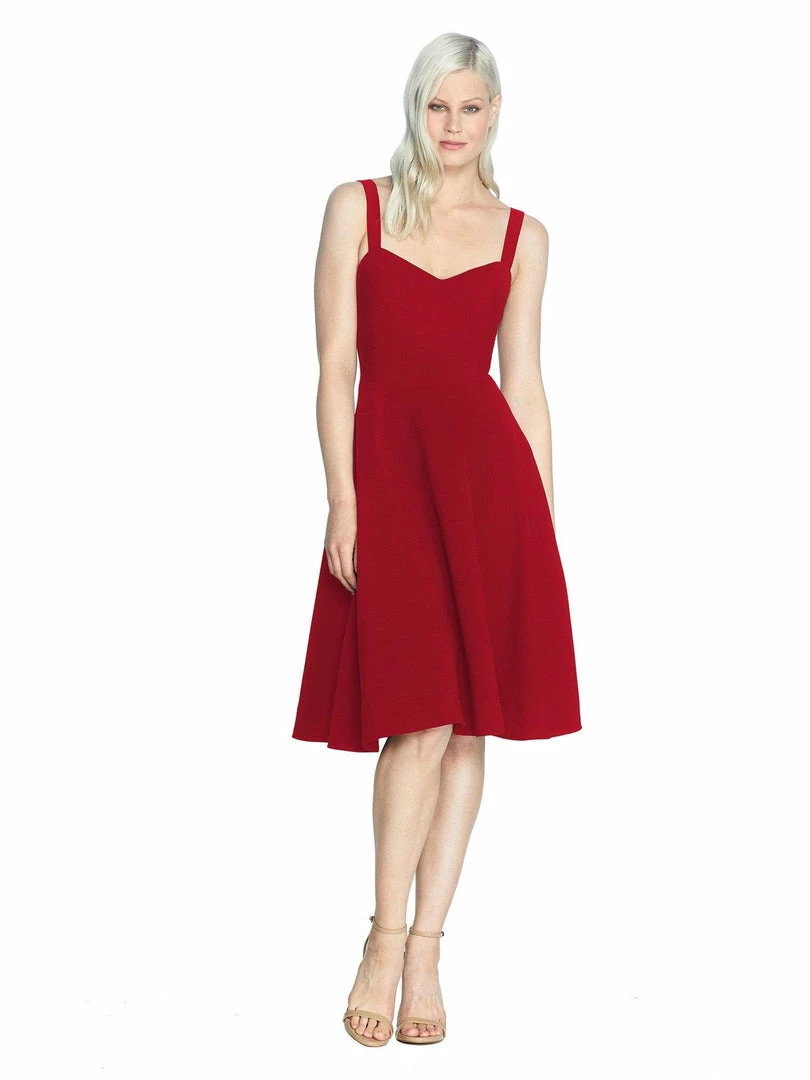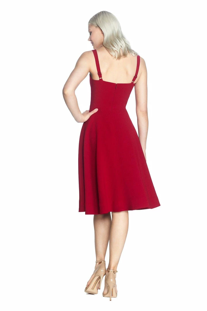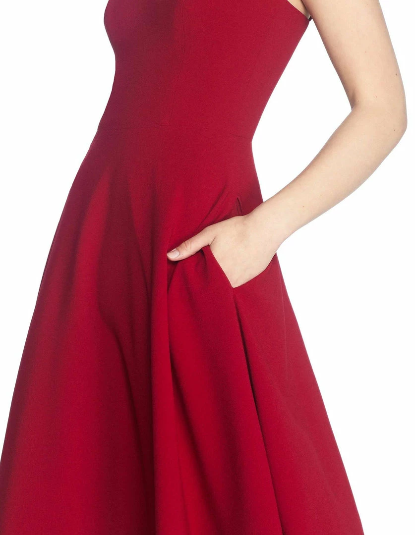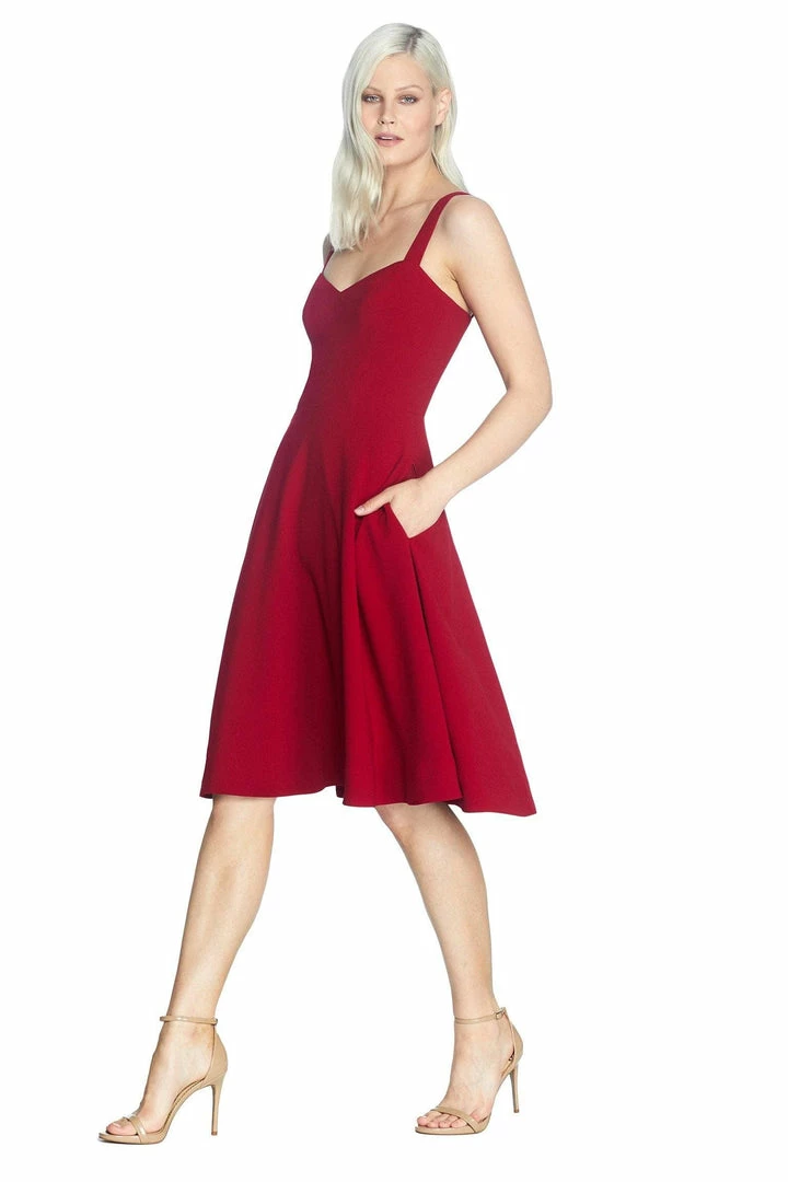 The Alina dress has a timeless swing silhouette with a knee-length A-line skirt. This gorgeous sleeveless dress features adjustable straps to ensure a comfortable fit and a sweetheart neckline. It’s made in our flattering crepe material in Garnet. Not only is this design flattering on every shape and size, but the pockets on both sides also make it a versatile option for many different occasions.