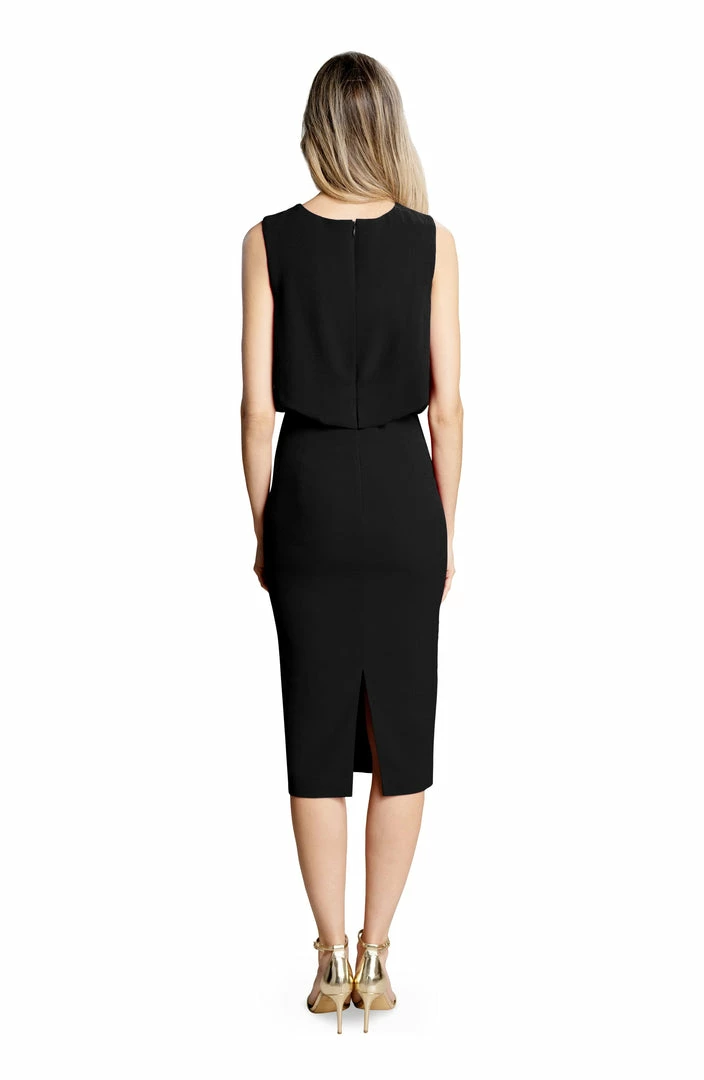 Amada is the perfect work wear dress with a high neck and blouson bodice. The skirt is a sleek form fitting pencil silhouette to finish the look