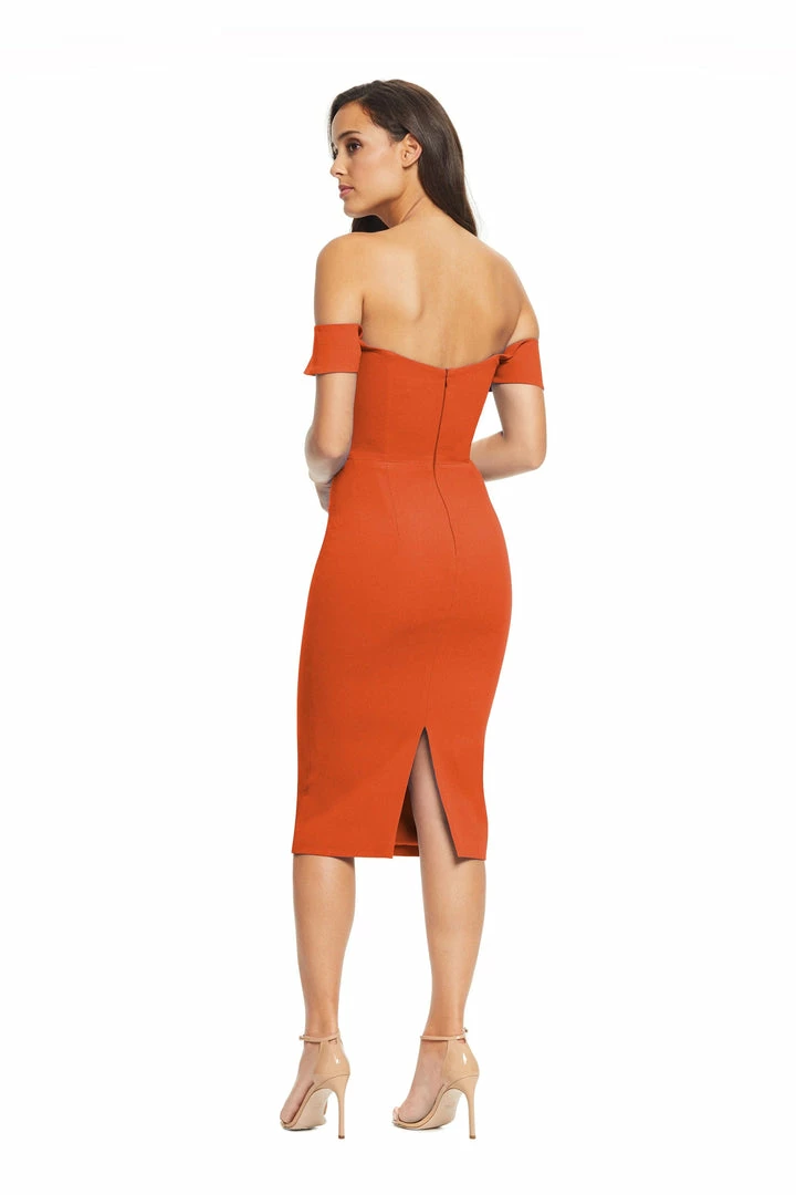 The form-fitting Bailey dress flaunts a cold-shoulder style sleeve and a semi-sweetheart neckline. The slit in the back of the snug pencil-shaped skirt adds a flirty touch to this sophisticated cocktail dress. This beautiful dress is made in our flattering classic crepe fabric in Poppy.