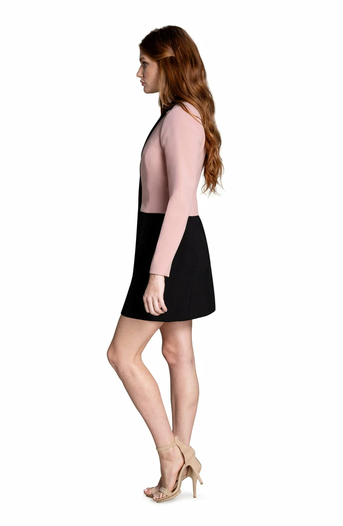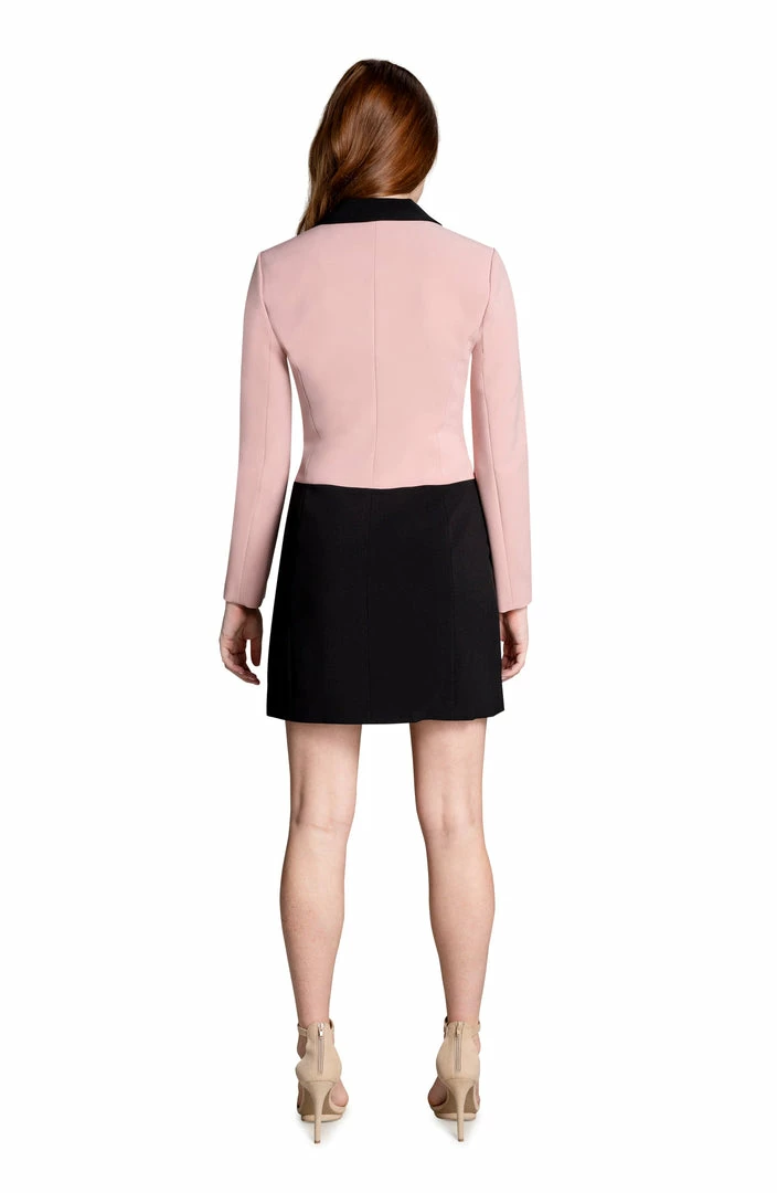 The Berkley is a versatile dress that can also be worn as a true jacket with a hidden button on the inside to hide the foldable skirt. Featuring a button-up front with straight sleeves in a sequin embroidered fabric in Black Multi with a contrasting collar.