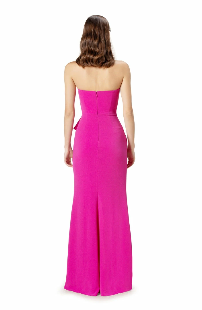 Strapless sweetheart bustier asymmetrical drape skirt gown