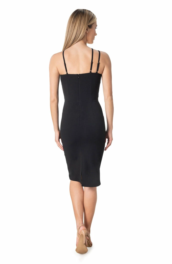 Asymmetrical strap, criss cross, bodycon midi dress. Perfect the your next event.
