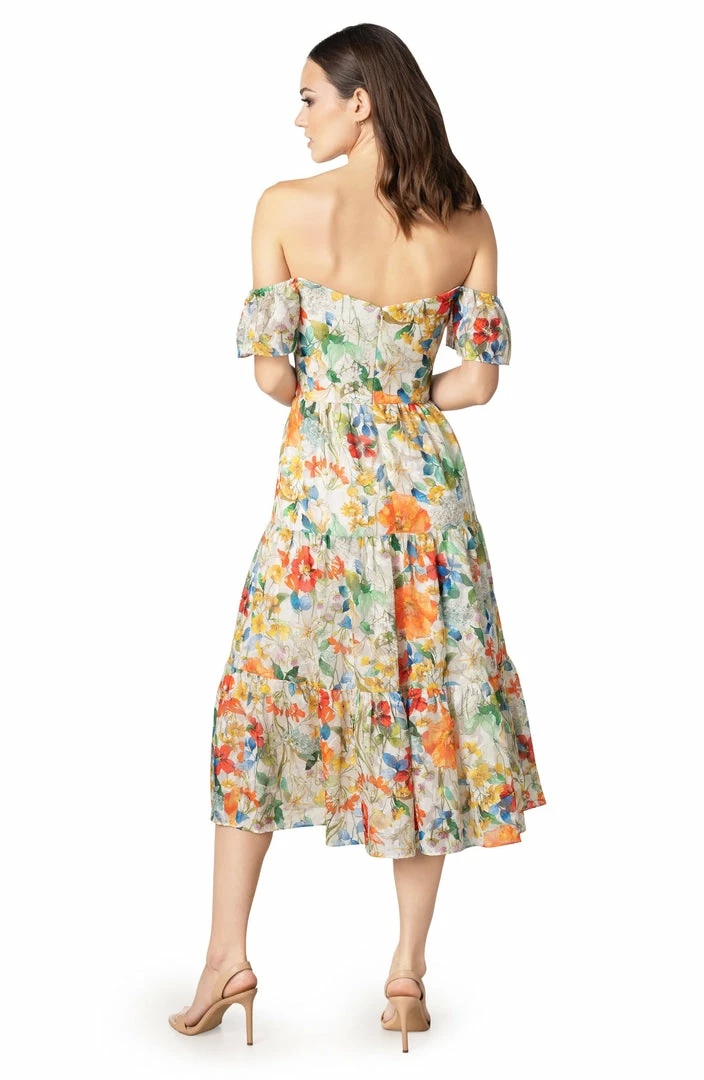 What truly sets this dress apart is the exceptional attention to detail. Eyelets are carefully sewn into the floral print for a delicate touch. Even the bottom of the dress receives extra consideration with a gracefully tiered hem.