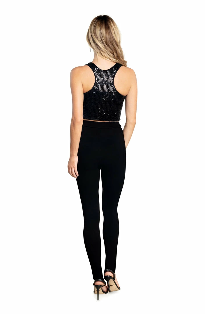 Looking to add a little shine to your wardrobe. Our racerback sequin top will be the perfect addition. Complete your look with our classic legging, or a pair of high rise flared jeans!