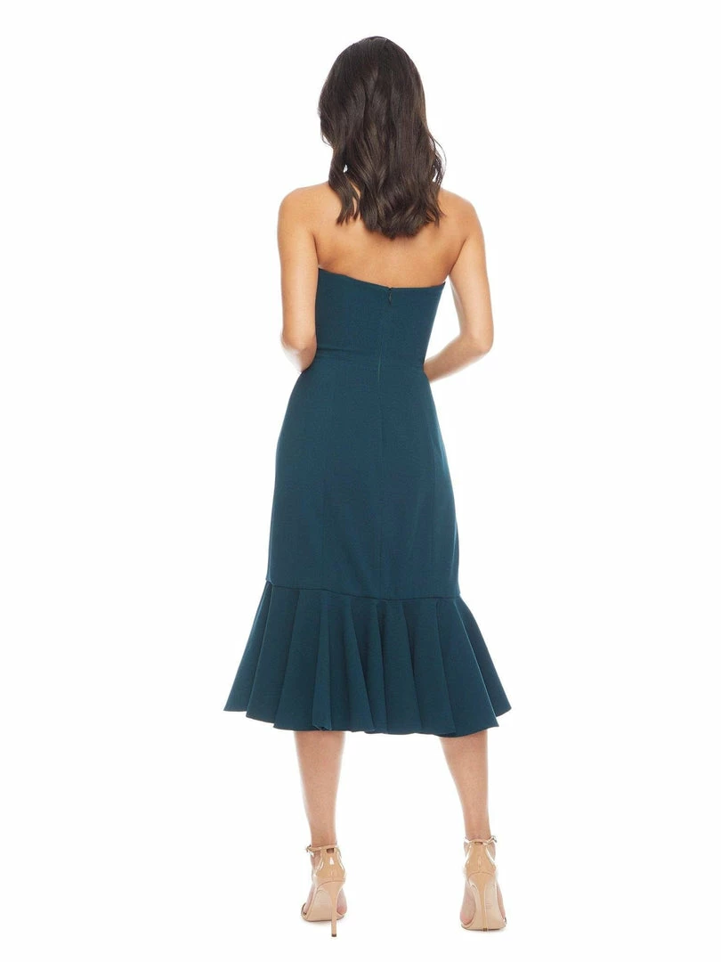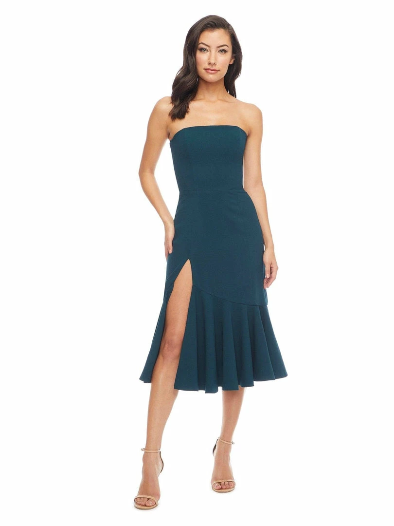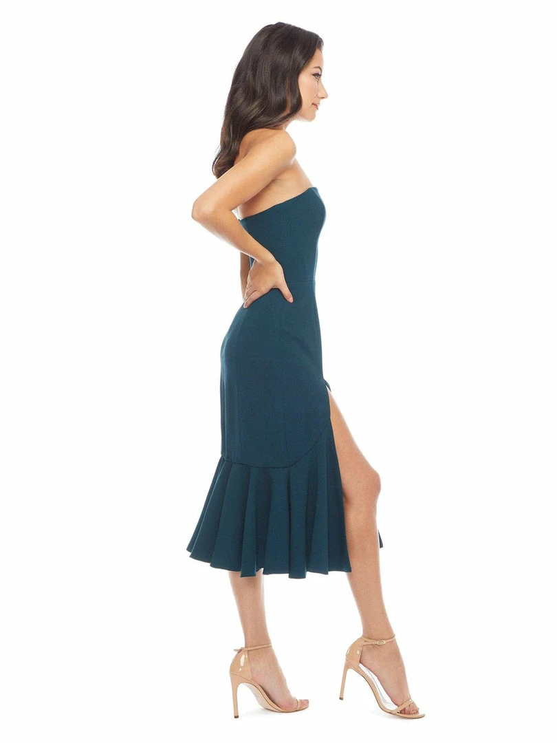Strapless Neckline, Front Slit, Fit and Flare Midi Dress