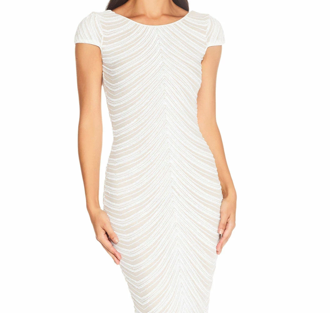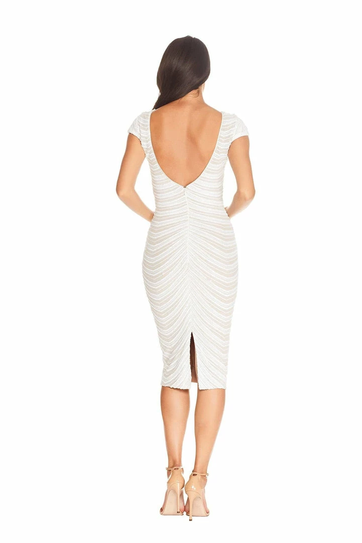 Cap Sleeve Low Back Neckline Back Skirt Slit Placement Sequin Bodycon Midi Dress
