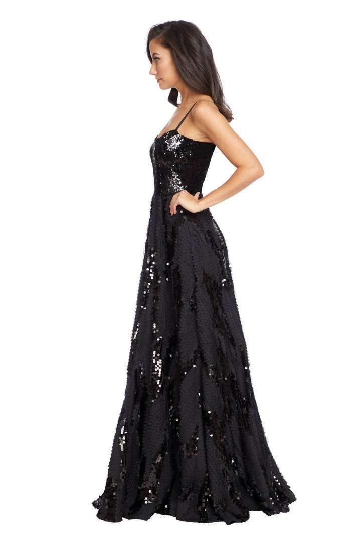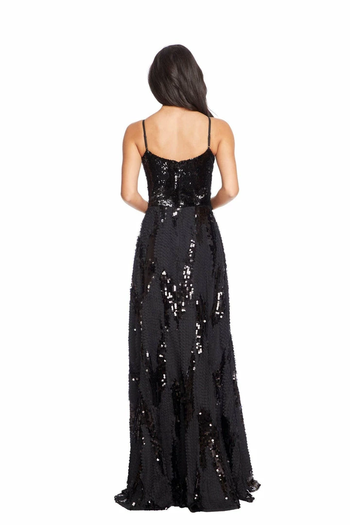 Low Scoop Neck Demi Bodice Fit and Flare Maxi Dress