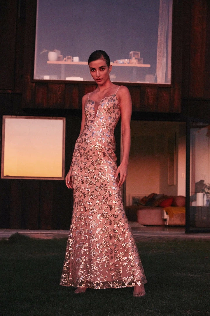 Spaghetti Straps Illusion Tulle Inset Mermaid Gown