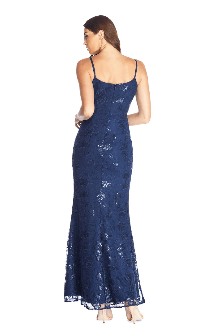 Spaghetti Straps Illusion Tulle Inset Mermaid Gown