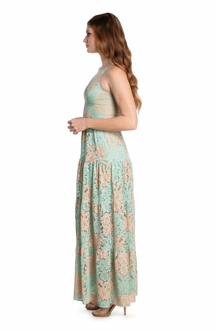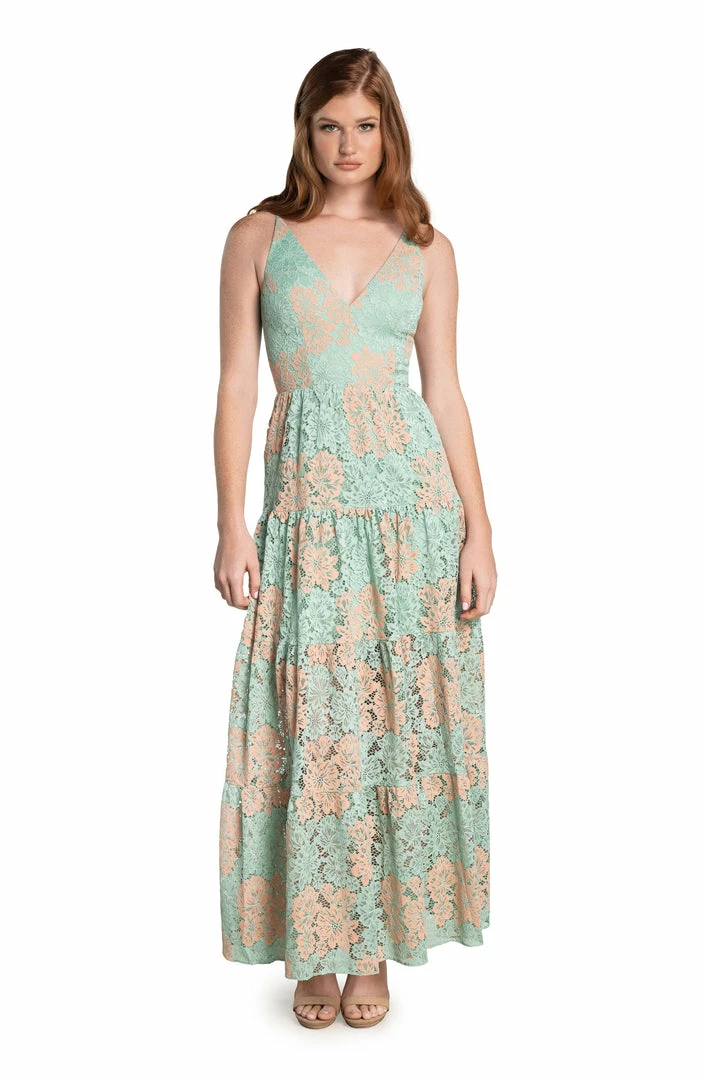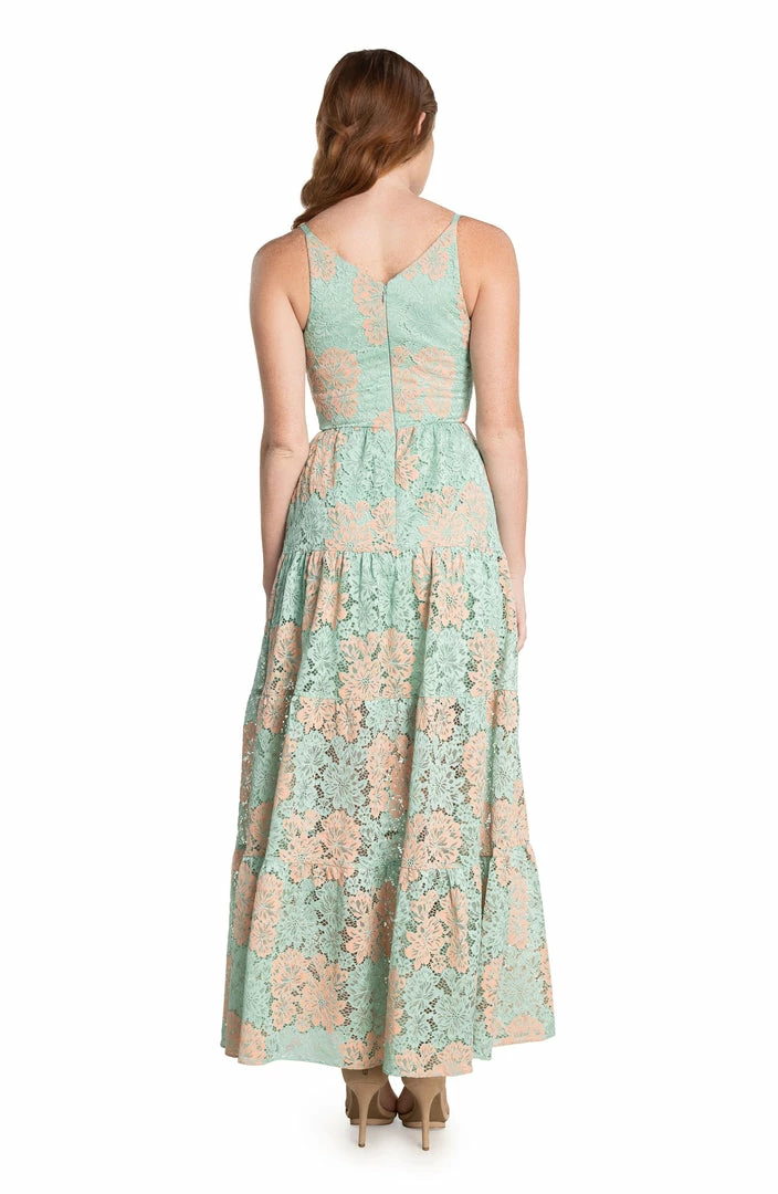 Sleeveless Plunge Neckline Tiered Skirt Fit and Flare Maxi Dress