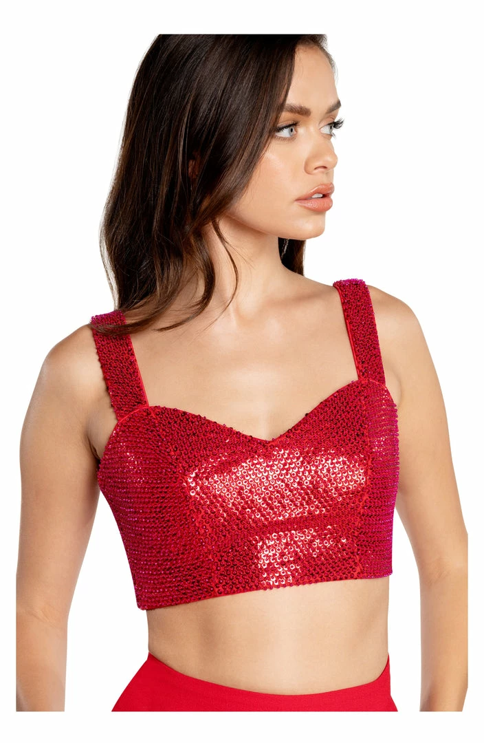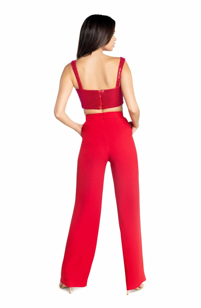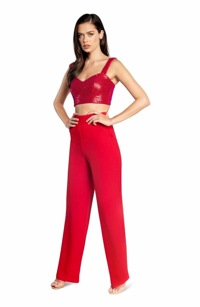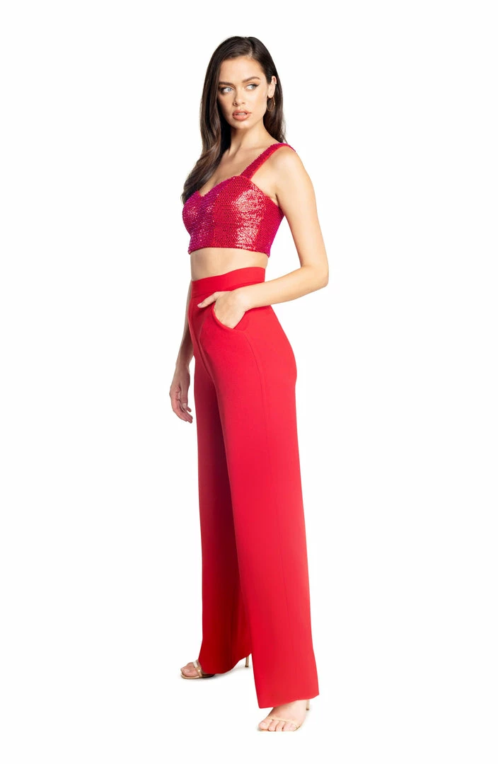 Two for one! Our perfect wide leg pant is paired with this luxe sequin crop top. The top is lined in knit lining for comfort.