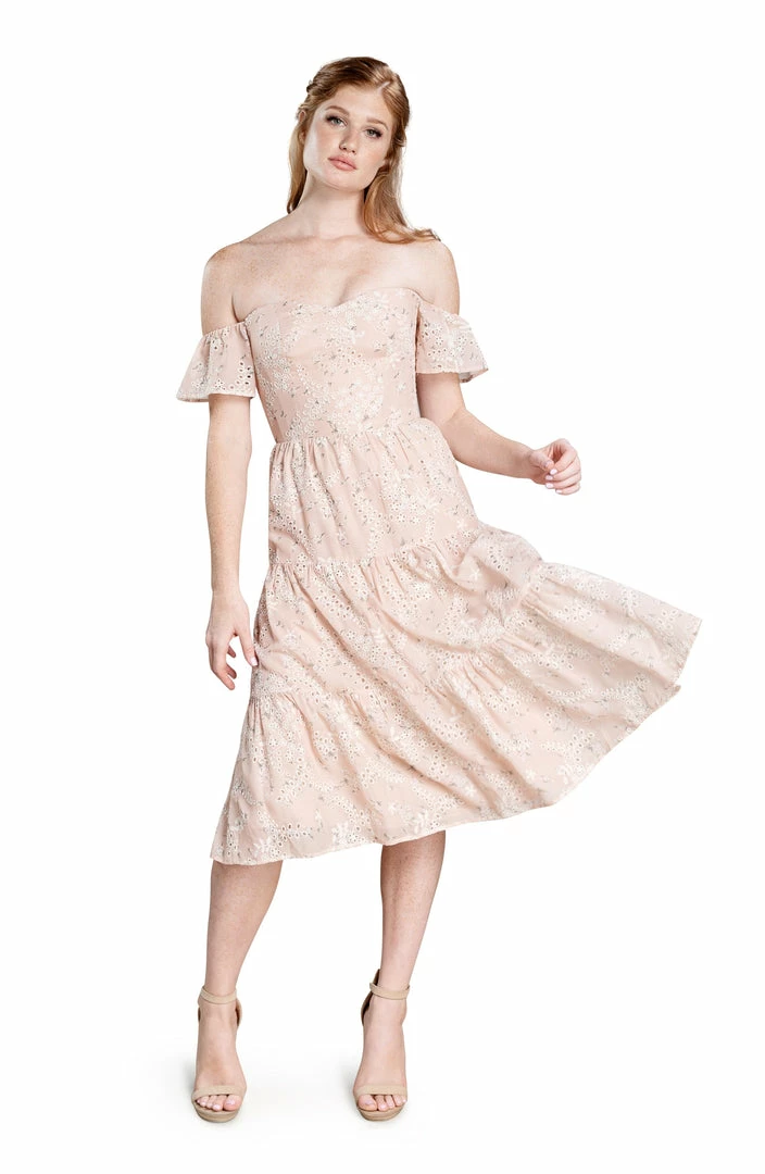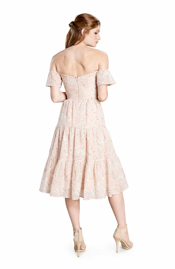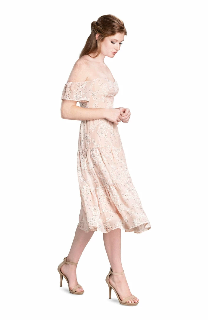 What truly sets this dress apart is the exceptional attention to detail. Eyelets are carefully sewn into the floral print for a delicate touch. Even the bottom of the dress receives extra consideration with a gracefully tiered hem.