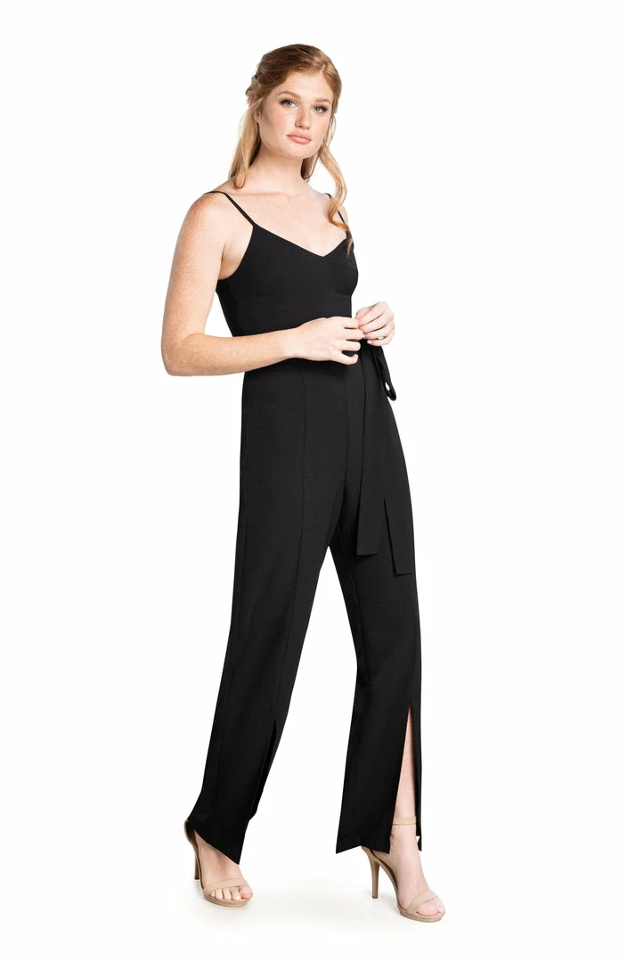 The Stevie Jumpsuit is designed to complement all of your best features in a fabulous way. A matching sash around the waist adds shape and form to this look. Even your legs get the attention they deserve with slits at the ankles to create a flowy finish.